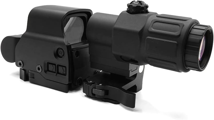 558 Red Green Dot Sight: Magnification: 1 X Objective Lens Diameter : 0.85 in Eye Relief : Unlimited Focus Magnification Type : Fixed Type Illuminated: 20 level brightness red and green reticle to provide maximum flexibility in different lighting conditions Illumination Type : Reflex Illumination Reticle Color : Red and Green Dot Brightness Settings : 10 Adjustment Click Value : 0.5 MOA Field of View, Linear : 30 yds at 4 in Resettable windage and elevation adjustment Height adjustment and view of the side Eevation adjustment and view of the side of Leverage Easy to install and setup, Integrated 5/8" 20mm Rail, with built-in quick detachable, Fits any 20mm Rail Material: Aluminum Alloy Aircraft Grade Lens Material : Optics Glass Lens Finish : Fog resistant internal optic Optical Coating : Anti-Reflection coating on external surface Finish : Anodizing Coating Shockproof、Fogproof Materials Length/Width/Height : 3.5 in/2.4 in/2.8 in Accessories: Scope Lens Cover, Lens Cleaning Cloth Net Weight: 265g Function Key: Up Arrow Button: Power on and increase brightness Down Arrow Button: Power on and reduce glare Up and Down Arrow Keys: off, pressing the keys simultane Push NV Button: Reticle Color Switching ( Red / Green ) G33 3X Magnifier: Magnification Fixed: 3X Eye Relief: 2.2" (55.8mm) Field of View: 7.3 degrees Length/Width/Height:3.9"(99mm)/2.2” (55.9mm)/3.3” (83.9mm) With Spacer Weight: 11.2oz (317.5g) With Mount Temperature:-40to 140 F(-40 to 60C) Waterproof(Water-Resistant): 33ft.(10m) Sealing: Fogproof(Fog-resistant) internal Optics Excellent Surface Treatment: Non reflective / Rubber coated Color/Finish: Non reflective black with Hard Coat Anodized Finish. Optical Axis Adjustment: Internal adjustment Height: 1.18"(30 mm)Clears common low profile flip up rear iron sights Switch Orientation: Ambidextrous mount Flip Orientation to allow left or right fip Rail Interface: Universal interface, with Quick Detach lock Magnifier Interface: User configurable height with quick detach mount