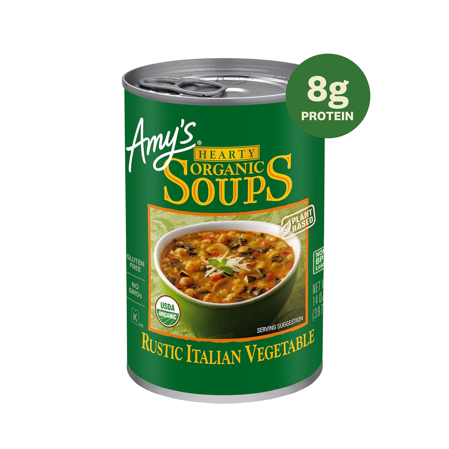 Packed with organic ceci beans (that’s Italian for chickpeas), vegetables, brown rice, mushrooms and traditional herbs, this recipe comes to us from our chef’s brother, who runs a cooking school in France. It’s ready to eat in minutes – just heat and serve. Amy’s is a proudly independent, family owned, organic food company. We always cook our food with love – we’ve been doing it for over 30 years. For us, that means carefully sourcing high quality, organic ingredients and spending countless hours in our kitchens so that you can enjoy authentic, great-tasting food in minutes. The fruits, vegetables and grains we use are grown without the use of insecticides, GMOs and other harmful chemicals. We prepare these ingredients with the same careful attention in our kitchen as you would in your own home for high quality, home-style vegetarian and vegan meals. No meat, fish, shellfish, poultry, eggs or peanuts are ever used in any Amy's products. Even though you're heating up our meals in your home, we want each bite to taste like you're a guest in ours. This soup is: gluten free, dairy free, lactose free, soy free, corn free, tree nut free, vegan and kosher.