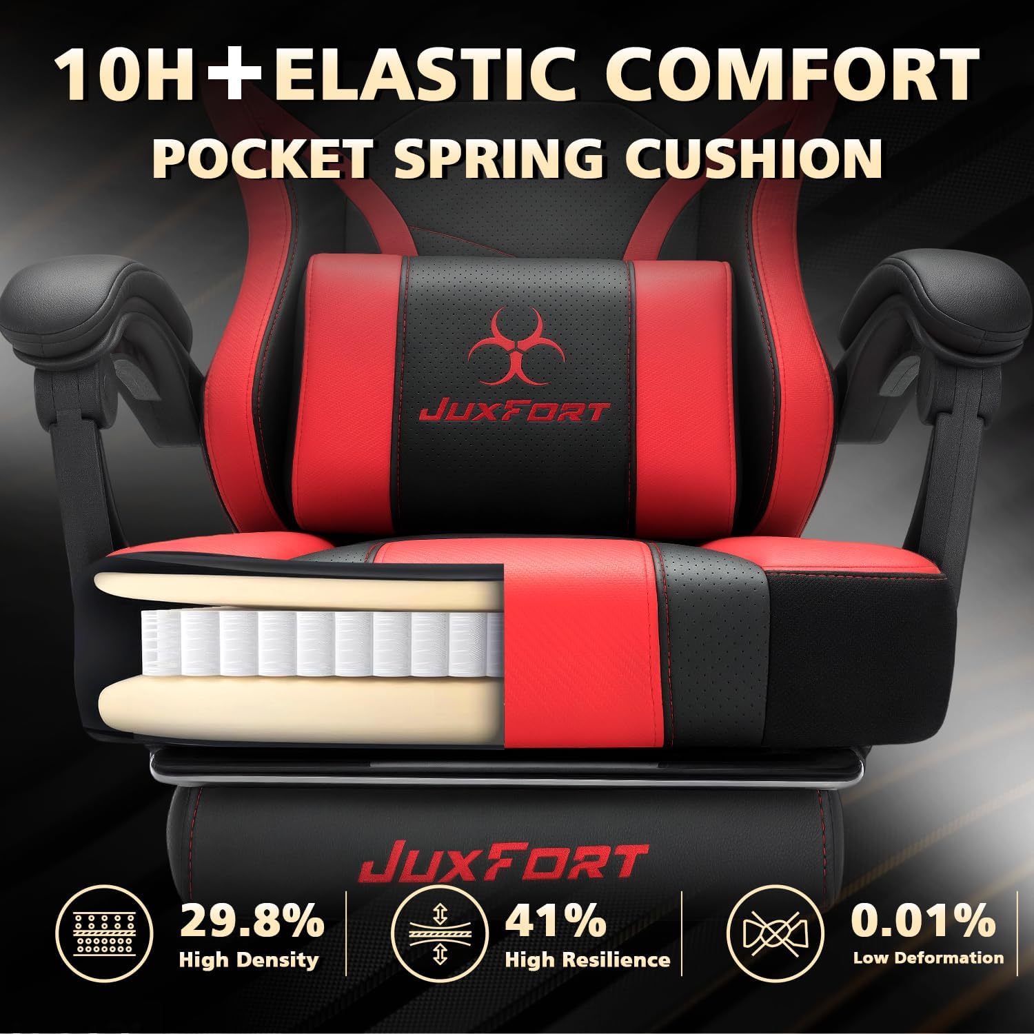 Big and Tall Gaming Chair with Massage and Pocket Spring Cushion,Gamer Chairs for Adults 400lb Weight Capacity, Video Game Chair with Headrest And Lumbar Support