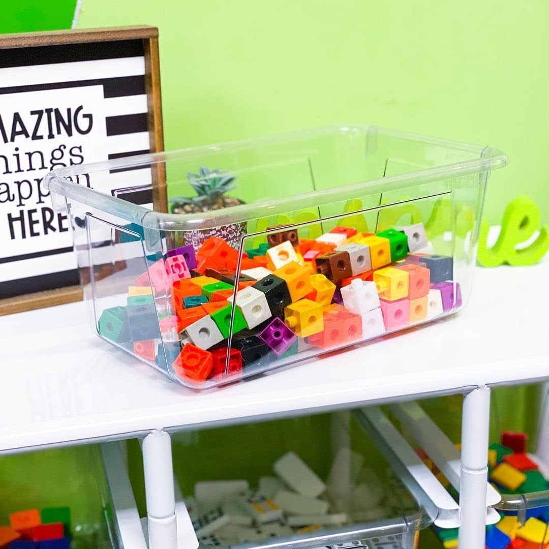 The Storex Cubby Bin fits perfectly in classroom cubbies, or in any space where additional storage is needed. The rounded edges are comfortable for both big and small hands and made moving the container from place to place a breeze. Useful boxes for organizing your classroom, they also help to declutter closets, bookshelves, and desktops. Each bin nests deeply together, so it's easy to store when not in use. Made of sturdy, drop resistant plastic, each bin will outlast years of use. A perfect bin for books, art supplies, small toys, or even children’s shoes. Made of nonporous plastic, this box is dishwasher safe and easy to sanitize. Available in a variety of neutral and fun, bright colors, choose the one that best suits your needs. Stay organized and with the Storex Cubby Bin.